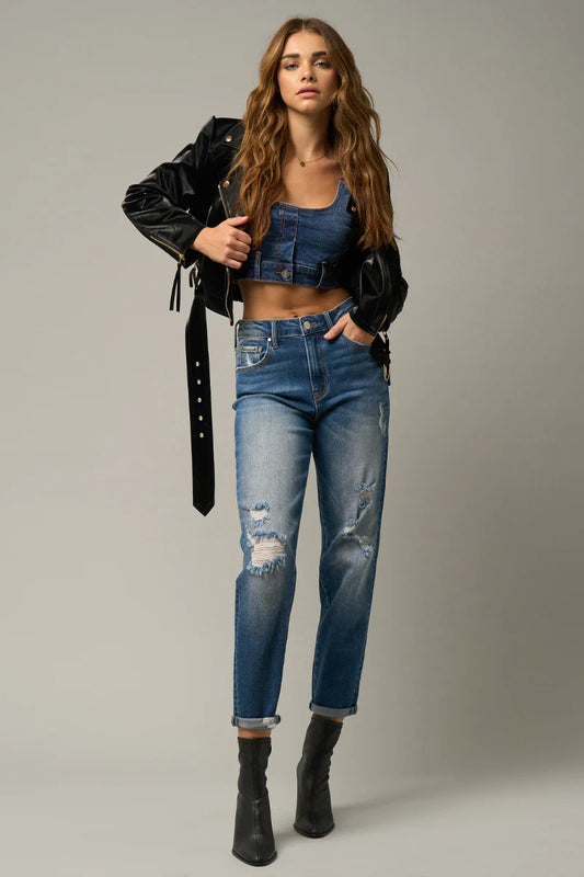 Ababa Mid Rise Distressed Boyfriend Jeans